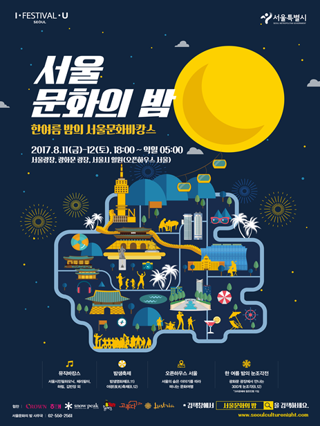 탱고·살사를 배워보는 야(夜)한 무도회(서울광장) , 300개 눈조각이 전시되는 한여름밤의 눈조각전(광화문 광장, 크라운해태 협찬)등 도심에서 다양한 문화와 시원함을 즐길 수 있는 도심휴가형 콘텐츠를 선보여 기분 좋은 여름밤을 선사할 예정이다.