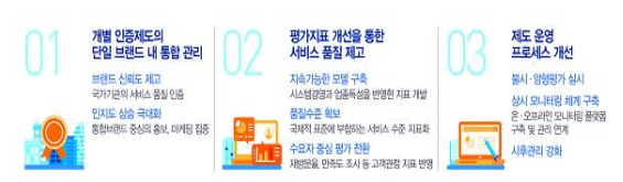 100대 국정과제 중 하나인 관광품질인증제를 통해 관광객에게는 신뢰성 있는 정보를 제공하여 만족도를 높이고, 사업자에게는 자발적으로 서비스 품질 개선을 하도록 유도함으로써 한국관광의 질적 개선에 기여할 것으로 기대된다.