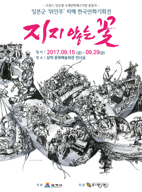 2014년 프랑스 앙굴렘 국제만화페스티벌에서 일본의 강력한 항의에도 불구하고 일본군위안부 피해를 만화로서 세계에 알리고, 오히려 일본전 참여부스를 철거시키며 이슈가 되었던 “일본군위안부 피해 만화전-지지않는 꽃” 전시회가 삼척에서 열린다.