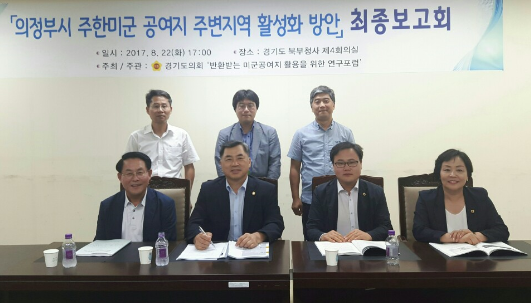 (교통문화신문) 경기도의회 반환받는 미군공여지 활용을 위한 연구포럼 정책연구용역(의정부시 주한미군 공여지 주변지역 활성화 방안) 최종보고회가 22일 경기도청 북부청사 회의실에서 개최되었다.