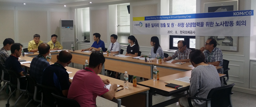 ‘노사 및 전문가 협의회’는 파견?용역 근로자의 정규직 전환을 협의하기 위한 것으로, 조폐공사 내부 직원과 두레비즈 등 외부 협력업체, 외부 노사 전문가 등으로 구성됐다. 간접고용 비정규직의 구체적인 전환대상과 방식, 시기, 임금체계, 채용방식 등을 협의해 상생 발전할 수 있는 방안을 모색하게 된다.
