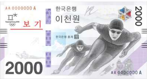 기념은행권의 액면은 2천원이며 규격은 가로 140㎜, 세로 75㎜이다.