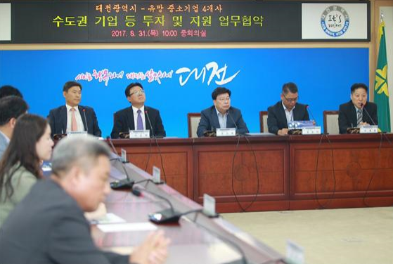 (교통문화신문) 대전광역시는 수도권 등 국내 4개 기업과 투자 및 지원 업무협약을 체결하고 4차 산업혁명 특별시 조성을 위해 박차를 가하고 있다.
