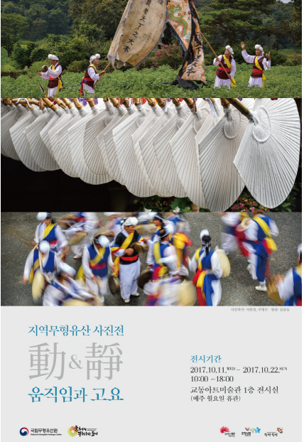 (교통문화신문) 문화재청 국립무형유산원(원장 직무대리 김정남)은 올해로 3주년을 맞이하는 ‘올해의 무형유산도시’ 사업을 위해 10일 오후 4시 개막식을 시작으로 오는 11일부터 22일까지 전북 전주시의 교동아트미술관에서 지역 무형유산을 주제로 한 <움직임과 고요, 동정動靜> 사진전을 개최한다.