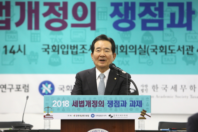 정세균 국회의장은 5월 3일 (목) 국회 입법조사처 대회의실에서 열린 「2018 세법개정의 쟁점과 과제」 세미나