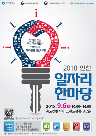 (교통문화신문) 인천시(시장 박남춘)는 9월 6일(목) 오전 10시 송도컨벤시아 그랜드볼룸에서 지역유관기관과 공동으로 「2018 인천 일자리한마당」을 개최한다.