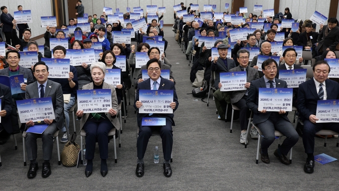 우 의장은 "지난 한 해, 우리는 비상계엄을 극복하기 격동의 한 해를 보냈다"며 "시민 여러분들이 추운 날씨에도 광장을 지키는 등 각고의 노력을 모아준 결과 어려운 일들을 잘 극복하고, 우리 사회가 한 발 한 발 내디딜 수 있었다"고 감사의 뜻을 전했다.