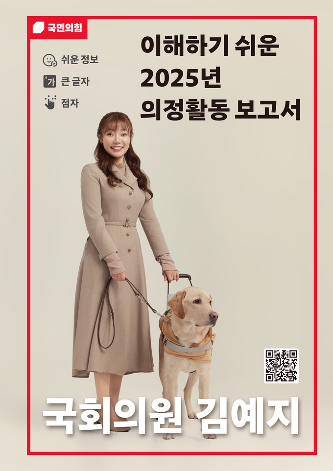 김예지 국회의원(국민의힘, 비례대표)은 13일 시각·청각·발달장애인 등 모두를 위한 「2025 알기 쉬운 의정보고서」를 발간했다고 밝혔다.