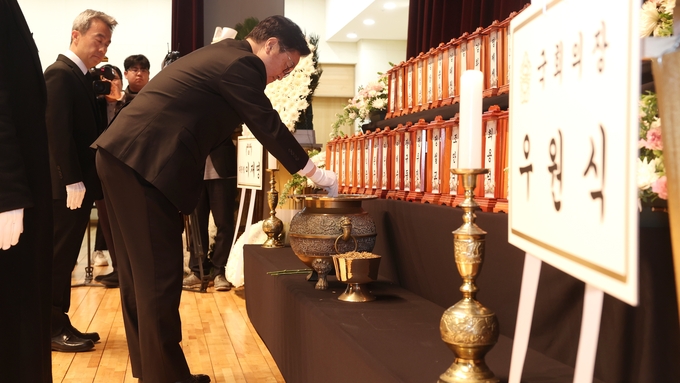 이어 "공동의 역사를 기억하는 것은 우리의 뿌리를 확인하는 일인 동시에 대한민국의 정체성을 바로 세우는 일이고, 앞으로 대한민국을 더 단단하게 만드는 힘이 될 것"이라며 "이 추모식의 주제어처럼 '그날의 빛'이 '오늘의 대한민국'을 만들었고, 그 빛은 앞으로도 우리의 길을 비추어 줄 것"이라고 덧붙였다.