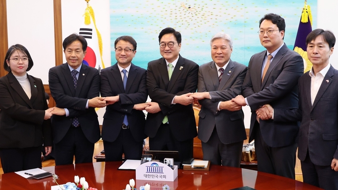 이날 연석회의에는 우 의장을 비롯해 한병도 더불어민주당 원내대표, 서왕진 조국혁신당 원내대표, 천하람 개혁신당 원내대표, 윤종오 진보당 원내대표, 용혜인 기본소득당 대표, 한창민 사회민주당 대표가 참석했다.