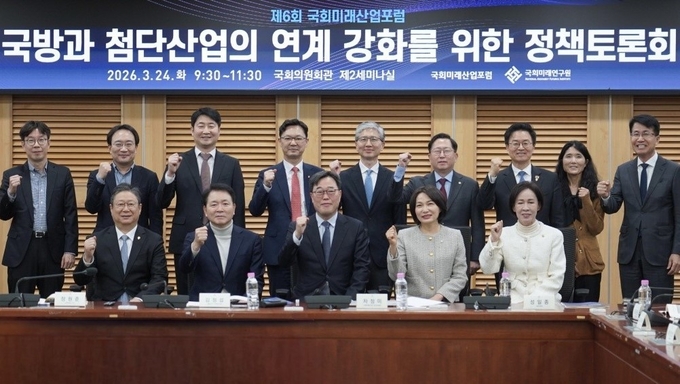 24일(화) 오전 국회의원회관 제2세미나실에서 <국방과 첨단산업의 전략적 연계 강화방안>을 주제로 개최한 '제6회 국회미래산업포럼'에서다.
