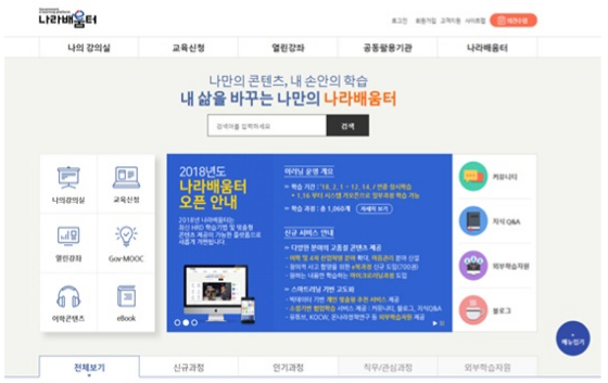 2018년 ‘빅데이터 기반의 맞춤형 추천’, 소셜 기반의 범정부 협업학습 서비스’, 그리고 다양한 ‘외부 공개학습자원 연계제공 서비스’ 등을 주요 내용으로 하는 3단계 사업을 마무리하여 7일 Grand Open했다.