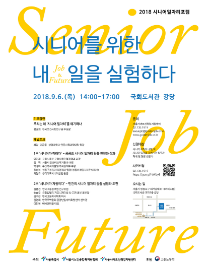 이번 포럼은 ‘시니어를 위한 내-일(Job & Future)을 실험하다’라는 주제로 시니어 일자리의 사회적 인지도와 공감대를 높이고자 마련한 자리이며 만 50세 이상 중.노년의 활기찬 인생 지원 및 건강한 일자리 활성화 기여를 목표로 삼고 있다.