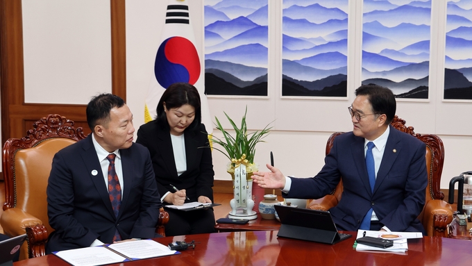 우 의장은 "한-몽 수교 35주년을 맞이하여 지난 4월 몽골을 공식 방문했다"며 "오늘 방문을 계기로 정부 간 협력만이 아니라 양국 의회 간 협력도 더욱 활발해 지길 바란다"고 말했다.
