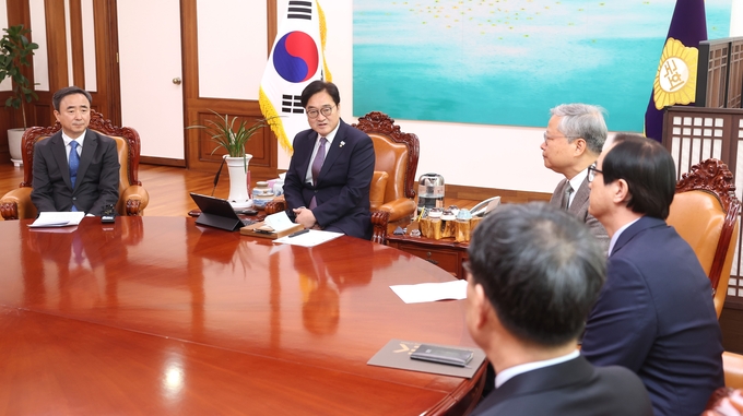 우원식 국회의장은 9일(월) 오전 의장집무실에서 임문영 국가인공지능전략위원회 부위원장, 윤의준 한국공학한림원 회장을 만나 인공지능(AI) 인재 육성을 위한 사회적 관심을 환기하고 국회·정부·학계·산업계 간 상호협력 방안을 논의했다.