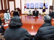 禹의장 "당사자 관점에서 장애인 포용적 근로환경 조성" 17일(수) 국회 장애인 정책 실효성 확대 위한 의원 간담회 개최 "장애인의 삶이 우리 사회 수준…국회가 나서 장애인 요구 반영" 우원식 국회의장은 17일(수) 오전 의장집무실에서 서영석·김예지·서미화·최보윤 의원과 국회 장애인 정책의 실효성 확대를 위한 간담회를 가졌다. 우원식 국회의장이 17일(수) 오전 의장집무실에서 국회 장애인 정책의 실효성 확대를 위한 간담회를 갖고 있는 모습. 왼쪽부터 최보윤 의원, 서미화 의원, 김예지 의원, 서영석 의원, 우 의장.(사진=국회사무처 사진팀) 우원식 국회의장은 17일(수) 오전 의장집무실에서 서영석·김예지·서미화·최보윤 의원과 함께 국회 장애인 정책의 실효성 확대를 위한 간담회를 가졌다. 우 의장은 "장애인의 삶이 곧 우리 사회의 수준으로, 장애인 정책은 당사자의 관점에서 펼치지 않으면 안 된다"며 "국회 모든 부서가 참여해 제안들을 적극적으로 검토해서 장애인 고용 촉진 및 포용적 근로환경 조성을 위해 노력해 나갈 것"이라고 말했다. 그는 이어 "장애인들의 국회 접근성 강화를 위해 점자 안내문 및 유도블록 등 시설을 개선 중이며, 카페 배리어프리 키오스크(무인
