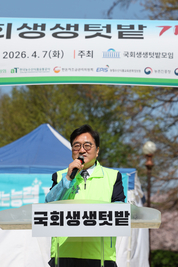 禹의장 "생생텃밭 통해 도시농업 가치 이끌어갈 것" 7일(화) '국회생생텃밭 개장식' 참석 우원식 국회의장은 7일(화) 오전 국회 경내에서 열린 '국회생생텃밭 개장식'에 참석했다. 우 의장은 인사말에서 "생생텃밭을 통해 여야협력, 도농상생, 도시농업의 가치를 국회가 앞장서 이끌어가겠다"고 말했다. 우 의장은 이어 "민생이 어려운 시기인 만큼, 국회에서도 추경(추가경정예산)을 제대로 처리해 국민들의 삶을 도울 수 있도록 노력하겠다"고 강조했다.